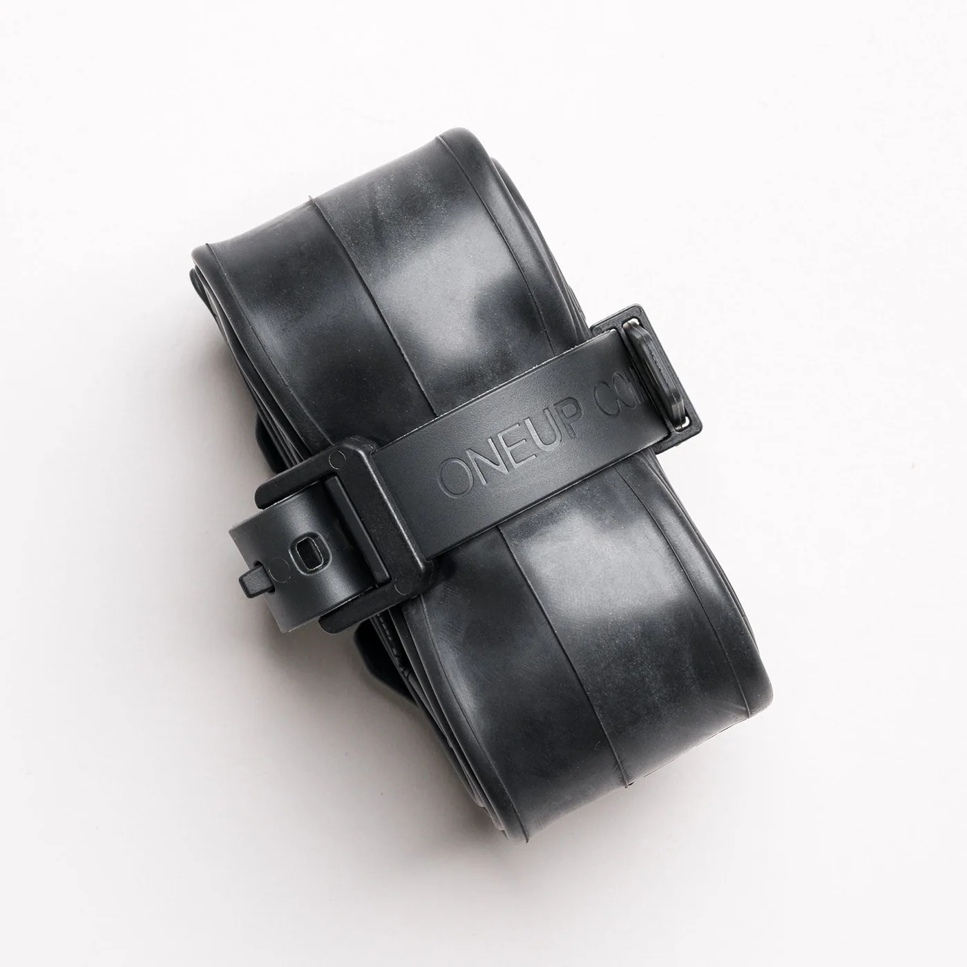 The EDC Tube Strap Mount is a flat mounting bracket with an included OneUp EDC Tension Strap. It lets you carry a spare tube without scratching or scuffing your frame. The strap’s adjustable 355mm length lets you carry other stuff too, and it’s replaceable.